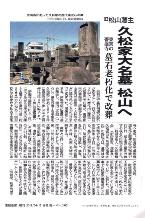 【済海寺】久松松平家墓所の発掘調査に伴う改葬工事を行いました 2025年7月09日 伊予松山藩主久松松平家の菩提寺、江戸大名墓所の墓49基の発掘調査にて、墓所に用いられていた石材撤去を株式会社片山石材が行いました(2018年9月〜)。